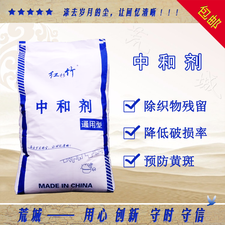 多數堿類分子都含一個金屬元素及羥基,多數酸類分子含非金屬元素以及酸根,堿遇酸,兩者都失去原有的性質,生成鹽和水,稱為酸堿中和反應。在用堿類洗料進行織物水洗后,會進行多次過水,但受諸多因素影響,不能保證洗后沒有堿性成份殘留,殘留的堿性成份,可以使織物變灰變黃,也會使織物手感發(fā)硬。所以用中和劑與殘存堿性成分發(fā)生中和反應,中和織物水洗后殘留的堿以及水中可能存在的堿性物質,調節(jié)PH值,使織物的PH值接近人體的體表PH值范圍(5.8~6.5)。